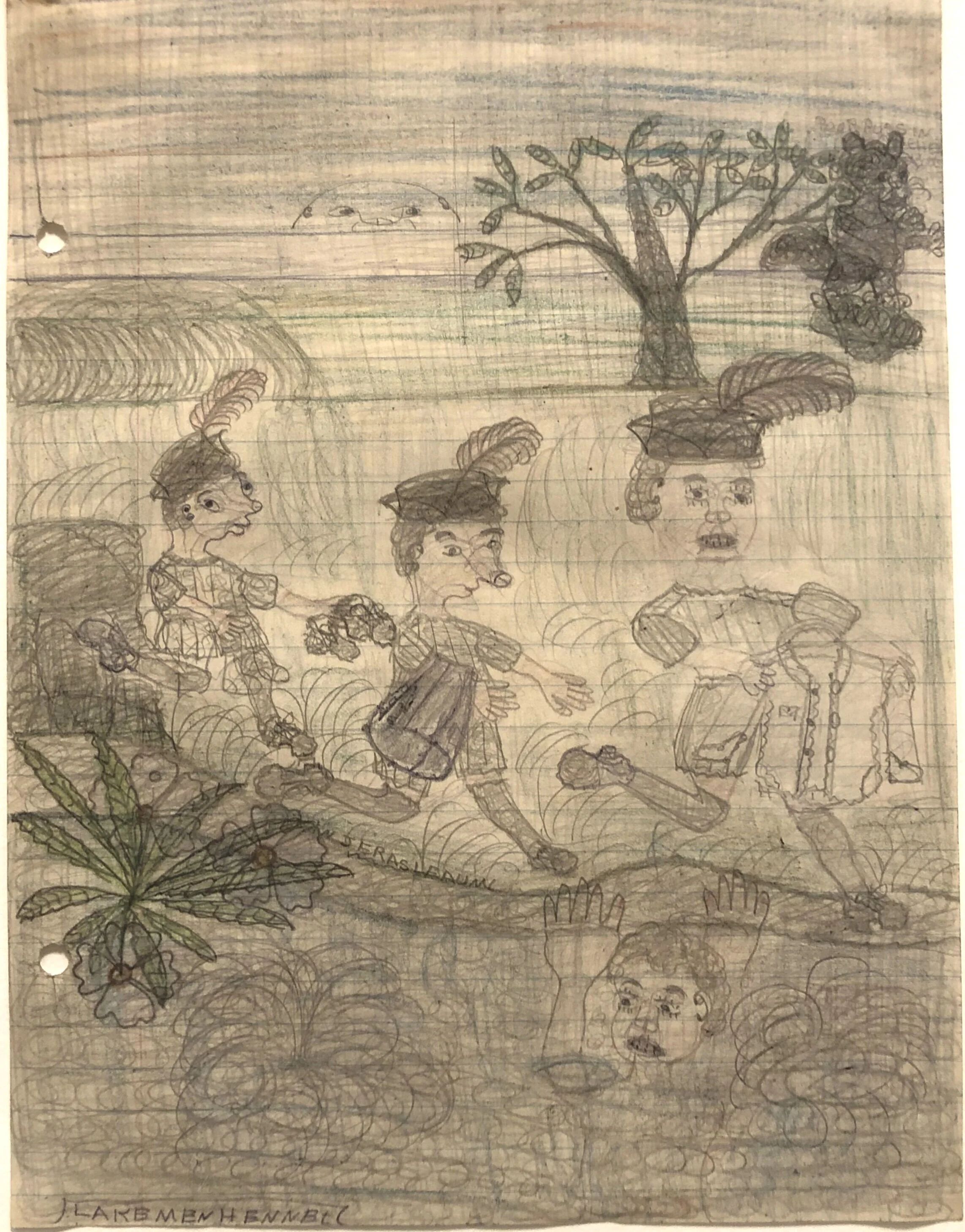 Graphite and colored pencil on notebook paper