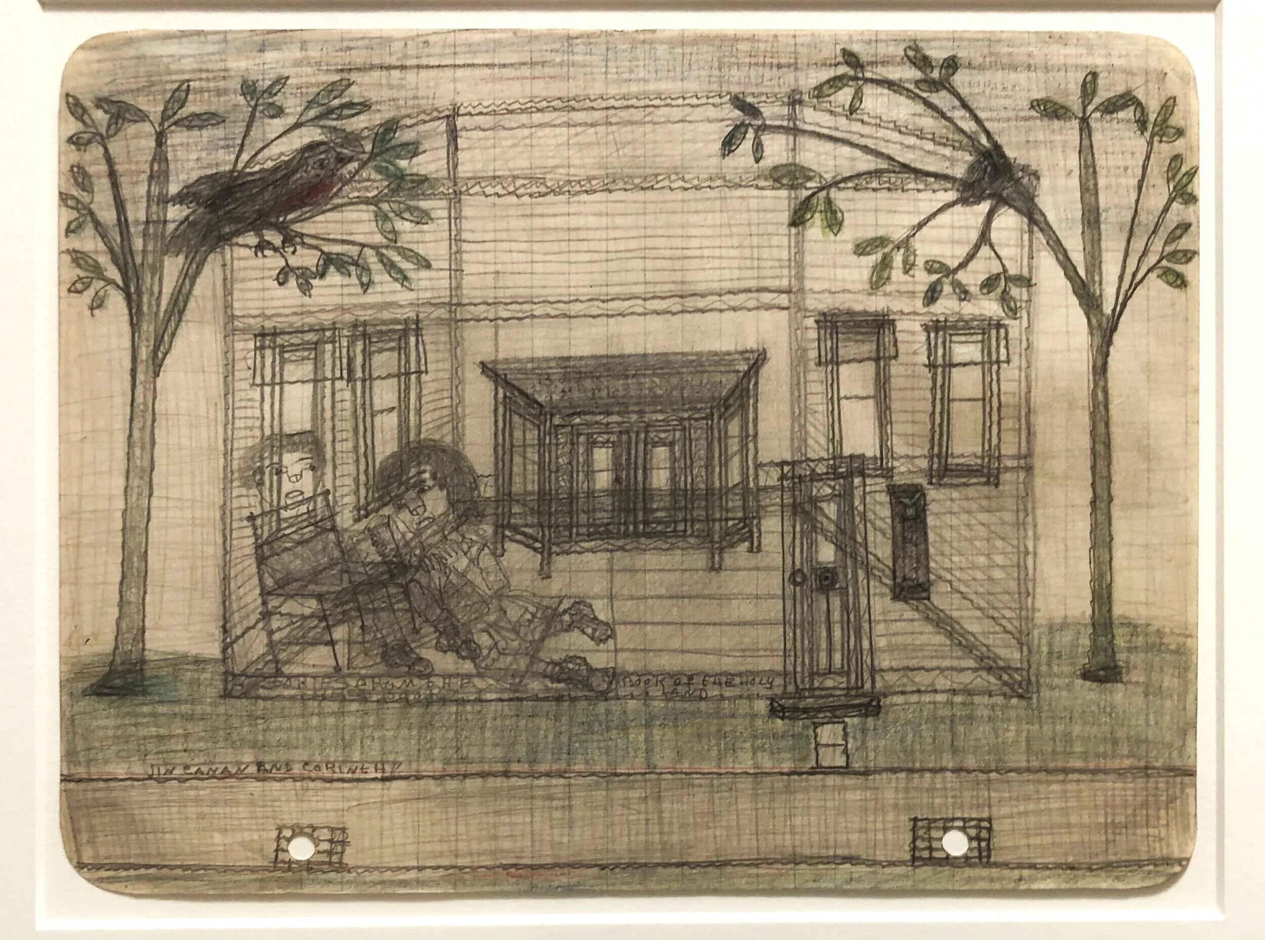 Pearl Blauvelt’s work was discovered by the artists Donna and Dennis Corrigan in their newly purchased home, long after the artist had died. Little is known about her life, but the few the details of her living situation (alone, with her father in rural Pennsylvania) tempt us with the familiar story of the reclusive, socially awkward, and mentally ill adult artist. Such speculation, however, can only serve to cement stereotypes that bring us farther from what we do know, which is some 800 drawings on notebook paper of various scenes of American life.